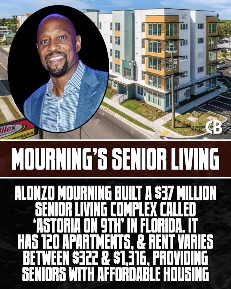9月18日讯 美媒Courtside Buzz报道,NBA名宿阿隆佐-莫宁牵头在佛罗里达建造了一座价值3700万美元的养老住宅综合体。该小区共有120套公寓,提供一室和两室户型,面积59-80多平方米之间。