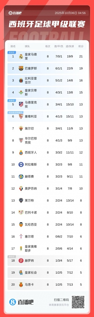 10月07日讯 西甲8轮战罢,近些年经常代表西甲出征欧战的皇家社会,却出现在了降级区。